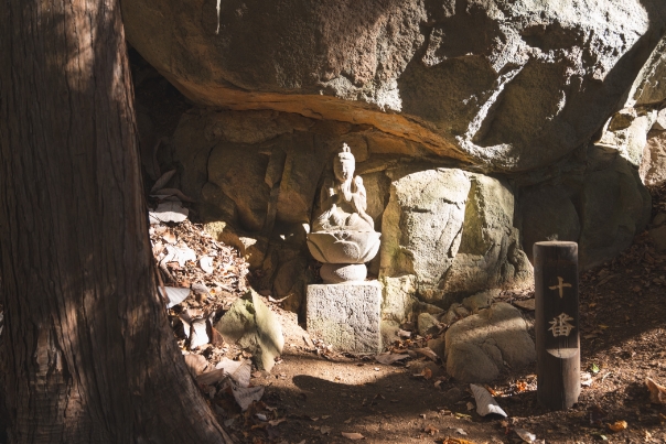 三十三観世音の石仏が点在し、一つひとつ数え、手を合わせながら歩くのも嵩